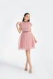 The dress with pink color and emphasizes black rim neck is the right choice for ladies who love feminity but also fashionable looks.
